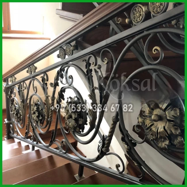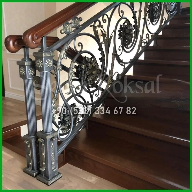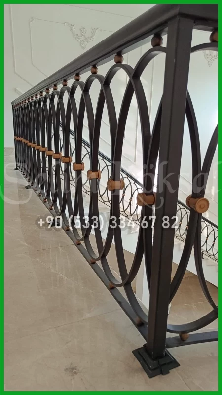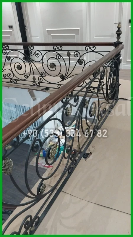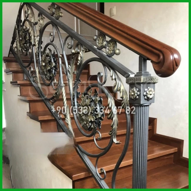 AHŞAP KOL DETAYLI FERFORJE MERDİVEN KORKULUKLARI