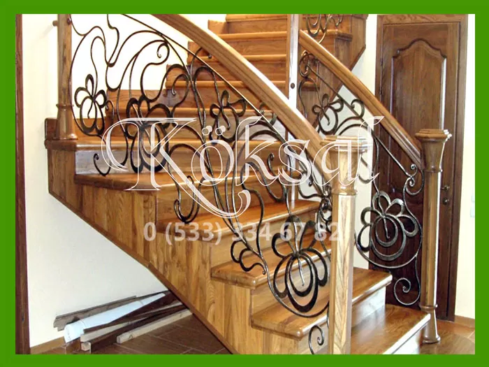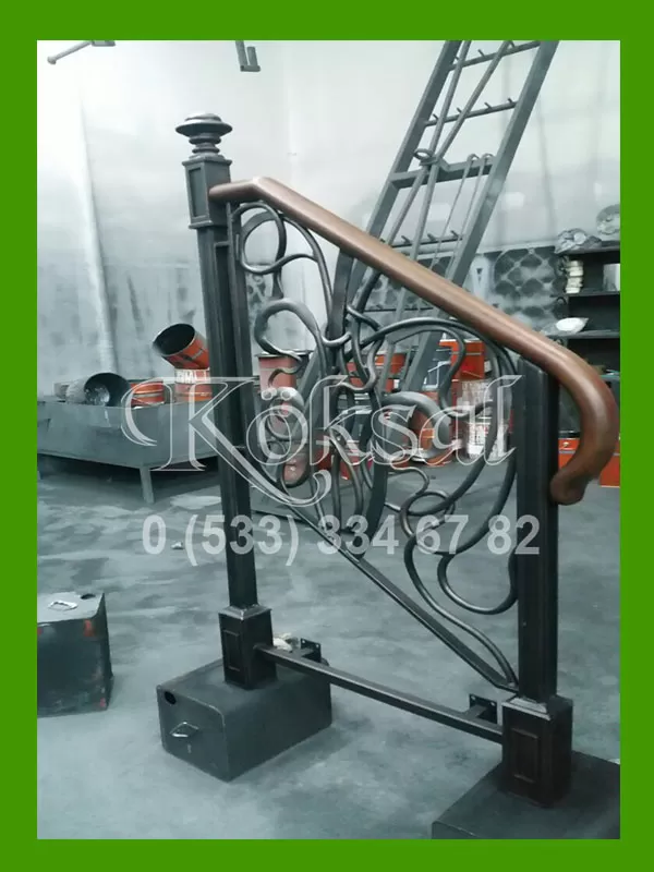 AHŞAP KOL DETAYLI FERFORJE MERDİVEN KORKULUKLARI